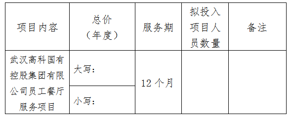 2、項目名稱:武漢高科國有控股集團(tuán)有限公司員工餐廳服務(wù)項目。