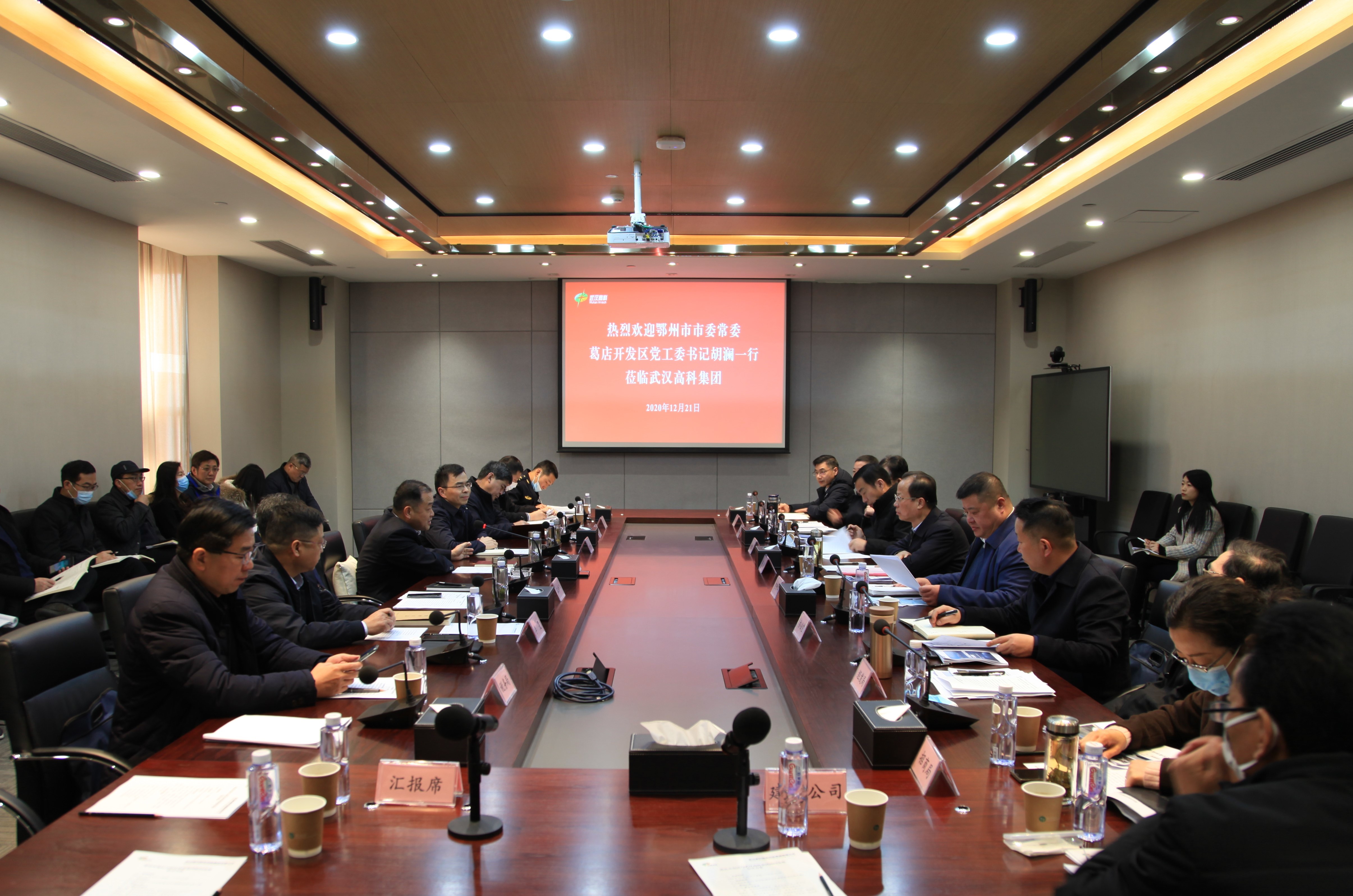12月21日,武漢高科集團黨委書記、董事長黃峰與來訪的鄂州市委常委、葛店開發(fā)區(qū)黨工委書記胡瀾一行就光谷葛店毗連區(qū)項目合作事宜舉行會談。葛店開發(fā)區(qū)工委委員、管委會副主任程貴華、黃曉明,葛店開發(fā)區(qū)相關(guān)部門負責人,武漢高科集團總經(jīng)理高尚及相關(guān)部室和企業(yè)負責人參加。