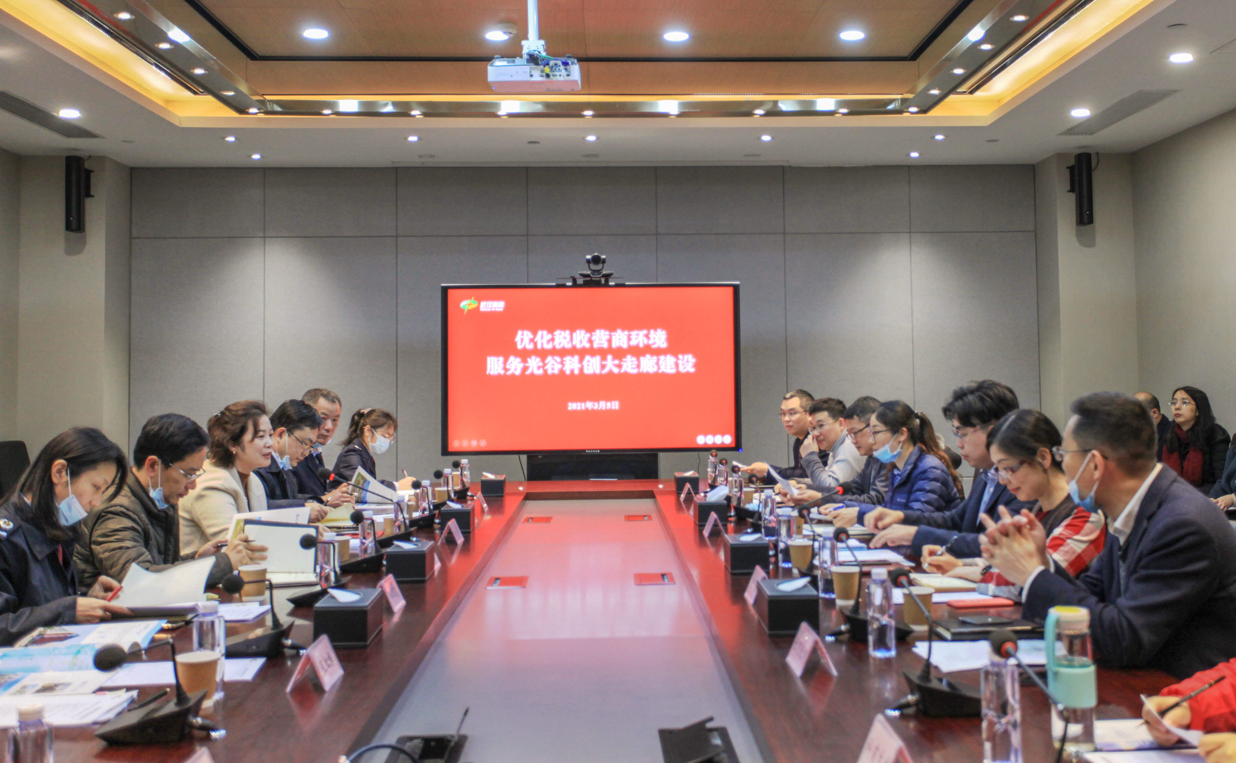 3月5日上午,東湖高新區(qū)稅務(wù)局總經(jīng)濟(jì)師方波、總會計師姚毅帶隊赴武漢高科集團(tuán),開展優(yōu)化稅收營商環(huán)境、服務(wù)光谷科創(chuàng)大走廊建設(shè)專題調(diào)研活動。