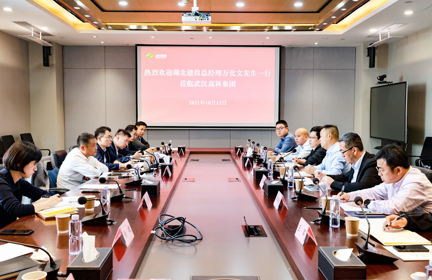 10月12日,湖北省建設(shè)投資集團(tuán)有限公司黨委副書記、總經(jīng)理萬化文率隊(duì)到武漢高科集團(tuán)走訪調(diào)研。武漢高科集團(tuán)黨委書記、董事長黃峰,總經(jīng)理高尚,副總經(jīng)理江中平,建投集團(tuán)副總經(jīng)理劉占兵等參加座談。