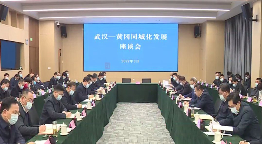武漢市領(lǐng)導(dǎo)曾晟、王清華,黃岡市委書記張家勝、市長(zhǎng)李軍杰等參加座談。
