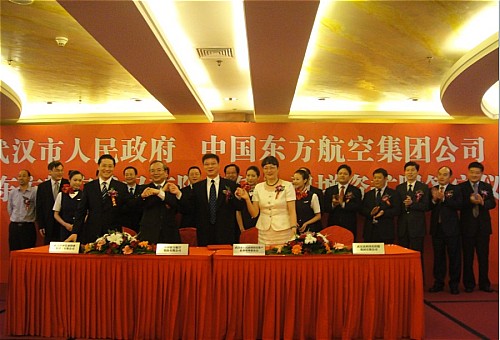 9月28日下午,武漢市人民政府、東航武漢公司、武漢市經(jīng)濟(jì)發(fā)展投資有限公司、武漢高科國(guó)有控股集團(tuán)有限公司四方成功簽署東方航空武漢有限公司增資擴(kuò)股協(xié)議。這標(biāo)志東航武漢公司戰(zhàn)略重組成功,也是落實(shí)湖北省民航優(yōu)先發(fā)展戰(zhàn)略的重大舉措,將有利于武漢中部崛起戰(zhàn)略,進(jìn)一步加速湖北武漢經(jīng)濟(jì)建設(shè)發(fā)展。