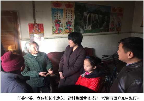 ??????? 1月20日下午,市委常委、宣傳部長(zhǎng)李述永及宣傳部機(jī)關(guān)干部、武漢高科集團(tuán)黨委書記、董事長(zhǎng)黃峰,副書記、副總經(jīng)理張志勇、紀(jì)委書記郭斌等一行到新洲區(qū)三店街石河村走訪慰問貧困戶。