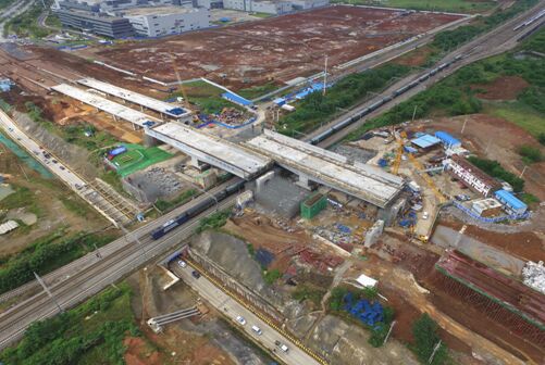 ??????? 左嶺大道跨武九鐵路高架橋位于光谷智能制造產(chǎn)業(yè)園,由武漢高科集團所屬的全資公司左嶺新城開發(fā)投資有限公司投資,中鐵大橋局承建,是連接臨江大道與高新大道的左嶺大道的關鍵控制性工程。