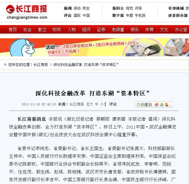 長江商報:深化科技金融改革 打造東湖“資本特區(qū)”