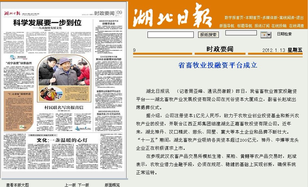 據(jù)介紹,公司注冊(cè)資本1億元人民幣,致力于農(nóng)牧業(yè)創(chuàng)業(yè)投資基金和新興農(nóng)牧產(chǎn)業(yè)的投資,并聯(lián)合江西正邦集團(tuán)組建湖北正嘉畜牧投資有限公司。近年來(lái),湖北神丹、漢口精武、思樂(lè)、同星、襄大等本土企業(yè)和品牌不斷壯大?!笆晃濉逼陂g,湖北畜牧產(chǎn)業(yè)吸納各類資本超過(guò)200億元,神丹、中博等龍頭企業(yè)正在積極謀求上市。