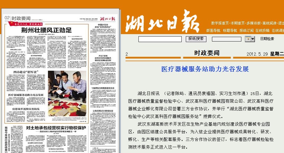 湖北日?qǐng)?bào)訊?(記者陳嶼、通訊員袁福國(guó)、實(shí)習(xí)生劉祚通)25日,湖北醫(yī)療器械質(zhì)量監(jiān)督檢驗(yàn)中心、武漢高科醫(yī)療器械園有限公司、武漢高科醫(yī)療器械企業(yè)孵化有限公司簽署三方合作協(xié)議,并舉行“湖北醫(yī)療器械質(zhì)量監(jiān)督檢驗(yàn)中心武漢高科醫(yī)療器械園服務(wù)站”授牌儀式。
