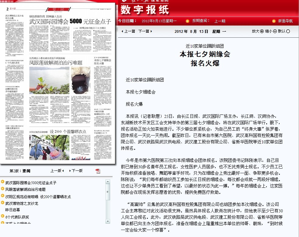 “高富帥”云集的武漢高科國有控股集團有限公司也組團參加本次姻緣會。該公司工會主席黎紅對此次活動很支持。雖然具體報名人數(shù)尚在統(tǒng)計中,但他表示至少已有30人向工會報名。此外,武漢鐵路局武漢供電段、武漢建工股份有限公司、省新華醫(yī)院等單位都已向主辦方團體報名,準備在姻緣會上隆重推出本單位的帥哥、靚妹,“到時候一定會給大家一個驚喜”。