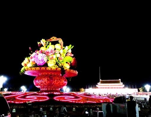 ????據北京市花木公司介紹,這個名為“祝福祖國”的大型花果籃造型花壇,堪稱國慶園林“頭牌”景觀。盡管今年擺花規(guī)模一律從簡,但天安門廣場沿線仍風姿未減,最大秘密武器就是動用高科技亮化手段,帶來全新視覺體驗。