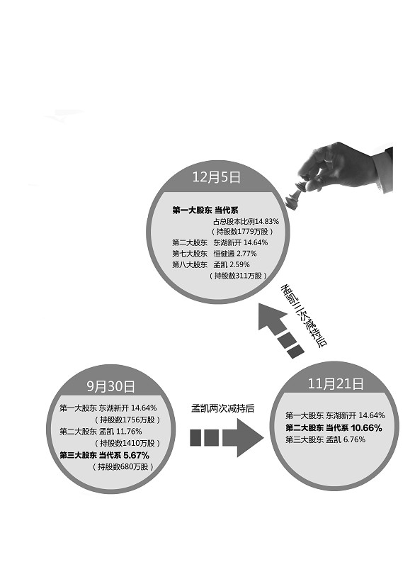 事實(shí)上,在目前情形下,當(dāng)代系的領(lǐng)先優(yōu)勢并不明顯,較東湖新開差距僅22萬股,隨時(shí)都有再度生變的可能。“目前,孟凱手中的股份成了關(guān)鍵數(shù)。”一位業(yè)內(nèi)人士稱。
