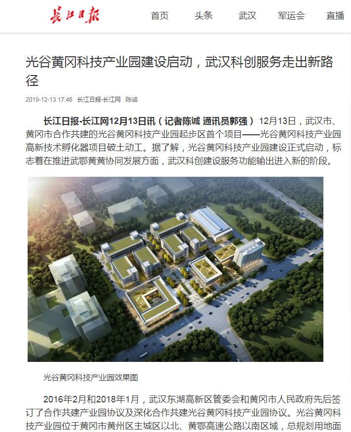 長(zhǎng)江日?qǐng)?bào)-長(zhǎng)江網(wǎng)12月13日訊(記者陳誠(chéng) 通訊員郭強(qiáng))?12月13日,武漢市、黃岡市合作共建的光谷黃岡科技產(chǎn)業(yè)園起步區(qū)首個(gè)項(xiàng)目——光谷黃岡科技產(chǎn)業(yè)園高新技術(shù)孵化器項(xiàng)目破土動(dòng)工。據(jù)了解,光谷黃岡科技產(chǎn)業(yè)園建設(shè)正式啟動(dòng),標(biāo)志著在推進(jìn)武鄂黃黃協(xié)同發(fā)展方面,武漢科創(chuàng)建設(shè)服務(wù)功能輸出進(jìn)入新的階段。