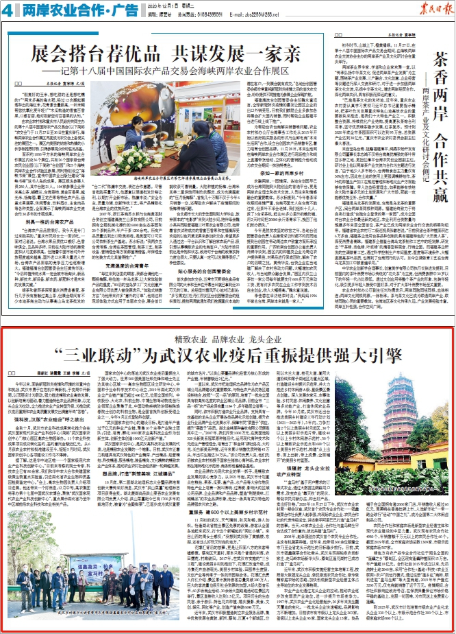 今年以來,面臨新冠肺炎疫情和汛情的雙重沖擊和挑戰(zhàn),武漢市勇于在危機中育新機、于變局中開新局,以頂層設計為聯(lián)動,強力推進精致農業(yè)高效發(fā)展,以創(chuàng)新培育為驅動,著力塑造特色農業(yè)品牌形象,以龍頭企業(yè)為拉動,全力推進農業(yè)產業(yè)轉型升級,為推動武漢疫后重振和農業(yè)高質量發(fā)展交出滿意年終“答卷”。