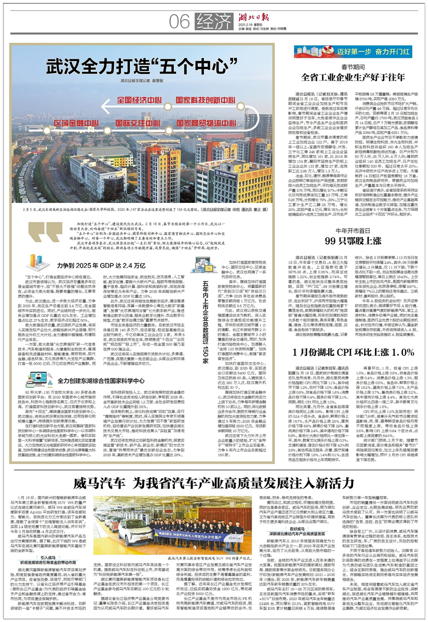 加快打造“五個中心”,建設現(xiàn)代化大武漢。2月18日,春節(jié)長假后的第一個工作日,武漢以一場動員大會,吹響奮進“十四五”新征程的號角。