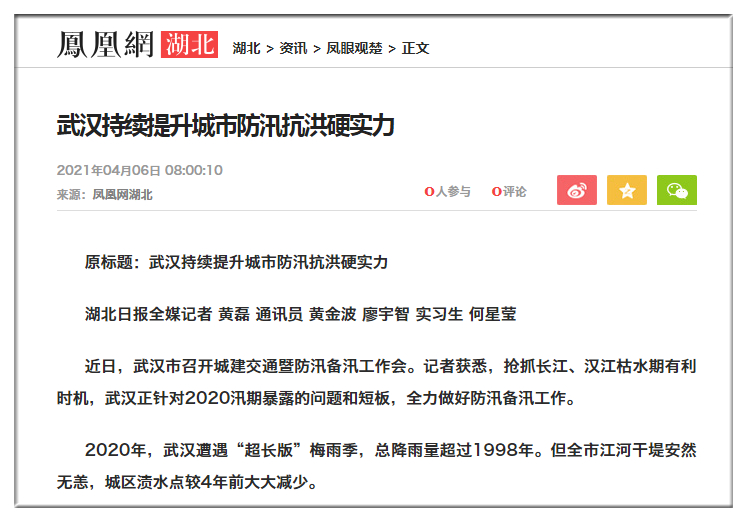 鳳凰網(wǎng):武漢持續(xù)提升城市防汛抗洪硬實(shí)力