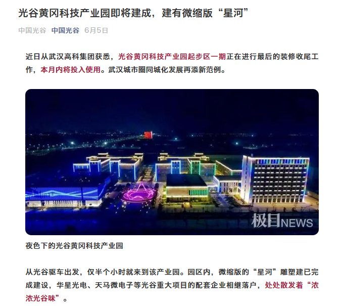中國光谷:光谷黃岡科技產(chǎn)業(yè)園即將建成,建有微縮版“星河”