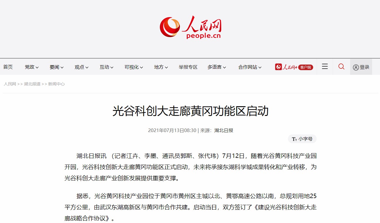 人民網(wǎng):光谷科創(chuàng)大走廊黃岡功能區(qū)啟動