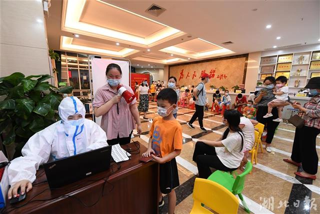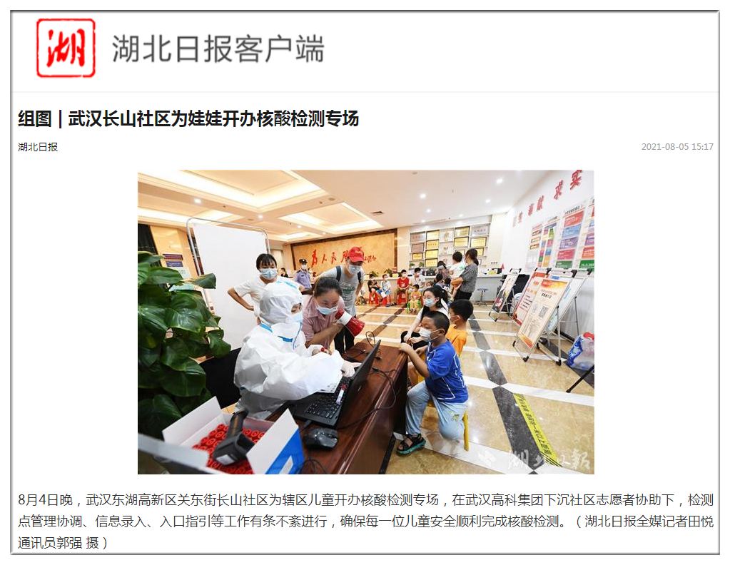 8月4日晚,武漢東湖高新區(qū)關(guān)東街長(zhǎng)山社區(qū)為轄區(qū)兒童開辦核酸檢測(cè)專場(chǎng),在武漢高科集團(tuán)下沉社區(qū)志愿者協(xié)助下,檢測(cè)點(diǎn)管理協(xié)調(diào)、信息錄入、入口指引等工作有條不紊進(jìn)行,確保每一位兒童安全順利完成核酸檢測(cè)。(湖北日?qǐng)?bào)全媒記者田悅 通訊員郭強(qiáng) 攝)