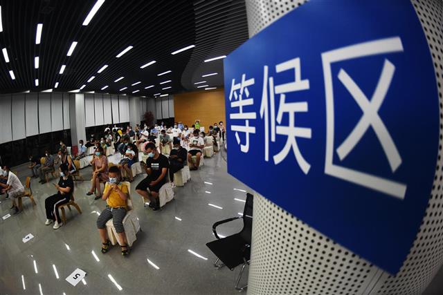 8月4日晚,武漢高科醫(yī)療器械園組織園區(qū)企業(yè)職工在空調(diào)大廳分批次進行核酸檢測。