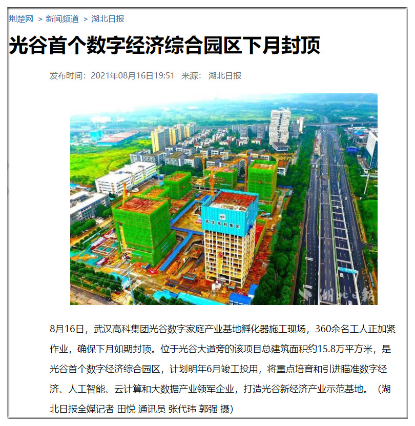 8月16日,武漢高科集團(tuán)光谷數(shù)字家庭產(chǎn)業(yè)基地孵化器施工現(xiàn)場(chǎng),360余名工人正加緊作業(yè),確保下月如期封頂。位于光谷大道旁的該項(xiàng)目總建筑面積約15.8萬平方米,是光谷首個(gè)數(shù)字經(jīng)濟(jì)綜合園區(qū),計(jì)劃明年6月竣工投用,將重點(diǎn)培育和引進(jìn)瞄準(zhǔn)數(shù)字經(jīng)濟(jì)、人工智能、云計(jì)算和大數(shù)據(jù)產(chǎn)業(yè)領(lǐng)軍企業(yè),打造光谷新經(jīng)濟(jì)產(chǎn)業(yè)示范基地。(湖北日?qǐng)?bào)全媒記者 田悅 通訊員 張代瑋 郭強(qiáng) 攝)