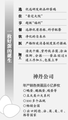 在蛋品加工上,神丹也毫不馬虎。在神丹公司安陸生產(chǎn)車(chē)間,一枚小小的雞蛋要經(jīng)過(guò)清洗干燥、紫外線(xiàn)殺菌、涂油保鮮、分揀等8道工序,才能包裝上市。