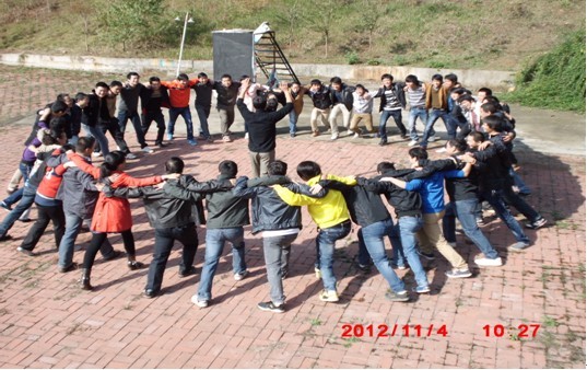 天公作美,秋陽(yáng)高照。在專業(yè)素質(zhì)拓展教練的指導(dǎo)下,全體隊(duì)員分成兩組進(jìn)行了多項(xiàng)目的訓(xùn)練。兩小組隊(duì)員人才濟(jì)濟(jì)、集思廣益,經(jīng)過(guò)隊(duì)員們的積極討論和建言獻(xiàn)策分別為各隊(duì)命名、設(shè)計(jì)LOGO、選出隊(duì)歌并合唱、設(shè)計(jì)招牌動(dòng)作等。各隊(duì)隊(duì)員團(tuán)結(jié)協(xié)作,斗志昂揚(yáng),在兩隊(duì)的大PK中旗鼓相當(dāng),不相上下。隨后開(kāi)展的一系列的“親密接觸”的小游戲,不僅鍛煉了協(xié)作精神,也拉近了人與人之間的距離。在真人CS游戲中,團(tuán)隊(duì)協(xié)作更是“減少傷亡,殲敵制勝”的法寶。