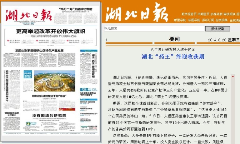 ? ? ? ? ?湖北日?qǐng)?bào)訊??(記者李墨、通訊員田雨禾、實(shí)習(xí)生吳曼連)近日,人福醫(yī)藥兩款全球首創(chuàng)新藥獲國(guó)家食藥總局批準(zhǔn),分別進(jìn)入一期和三期臨床。去年,人福共有6款新藥獲生產(chǎn)批件走向產(chǎn)業(yè)化,占全省一半。在8年累計(jì)研發(fā)投入逾10億元后,湖北“藥王”終迎收獲期。