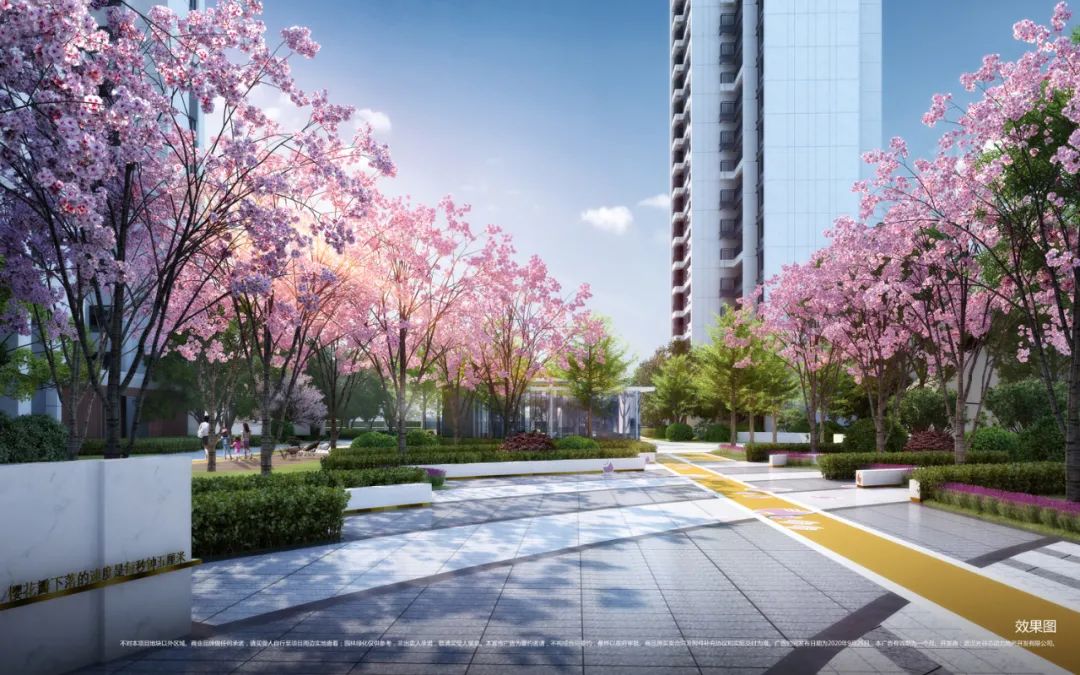? ? ? 在景觀營造上,項目歸家主軸線以銀杏、香樟、櫻花為主要品種相繼鋪開,交相點綴,打造浪漫幽靜的景觀效果。