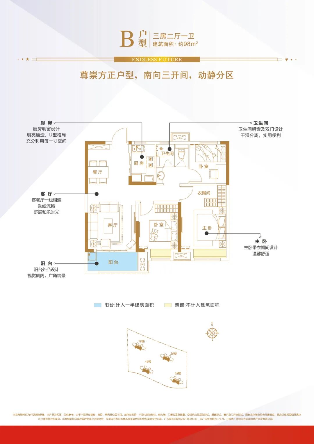 顯然,世茂在打造項目時,真正考慮到了住戶居住感受。除了園林整體規(guī)劃,高科世茂十里星河的每一個戶型,也都是以舒適為前提。高科世茂十里星河目前首推的是位于A地塊北側的1#、4#號樓,共有約98㎡和115㎡兩個戶型,均為三房兩廳設計。一般100㎡以下的三房戶型,往往尺度局促,大部分只有一個衛(wèi)生間,而且家里一開火,臥室都是油煙味。?相比之下,世茂的這個98㎡戶型在規(guī)劃上,很好地規(guī)避了這些痛點。